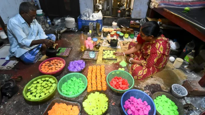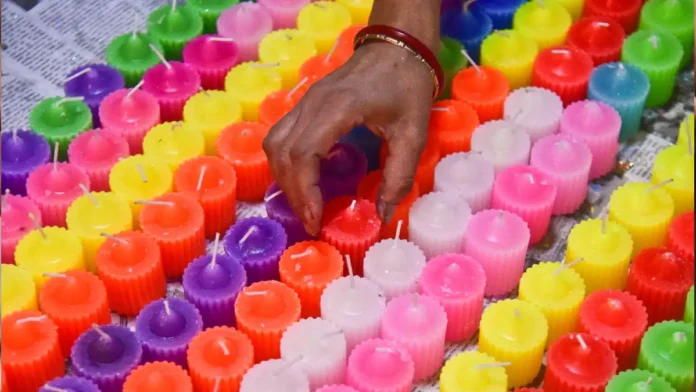 1রঙবাহারি মোমবাতি তৈরি চলছে