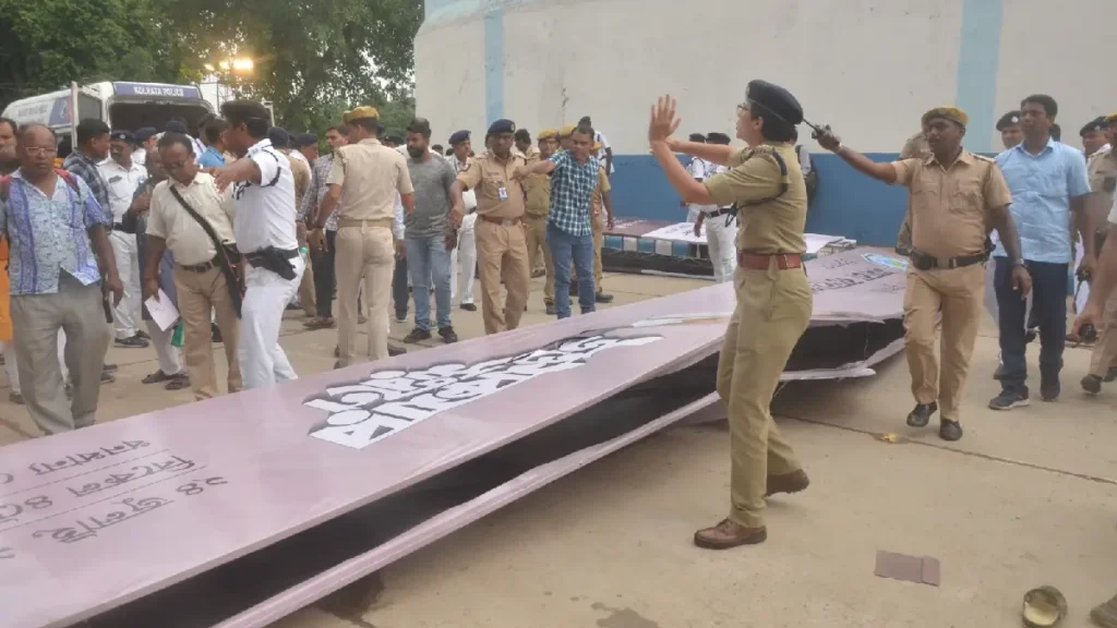 এ দিন মুখ্যমন্ত্রী ধনধান্য অডিটোরিয়ামে আসার আগে তোরণ ভেঙে পড়ে। এর ফলে দু’ জন আহত হন।