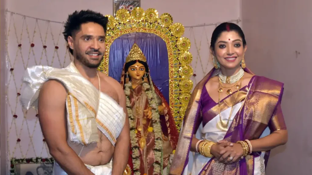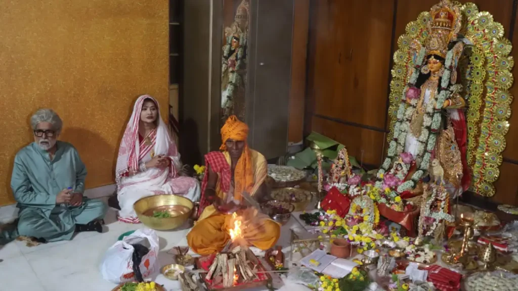 সোমবার সকাল থেকে ভবানীপুরের চট্টোপাধ্যায় বাড়ির লক্ষ্মীপুজোয় ব্যস্ত অভিনেতা গৌরব চট্টোপাধ্যায় ও দেবলীনা কুমার। এই পুজো উত্তমকুমারের পুজো নামে খ্যাত।