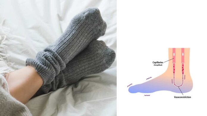 সর্বনিম্ন তাপমাত্রার পারদ নামতে শুরু করলেই শরীর প্রাকৃতিক ভাবে প্রতিরোধ তৈরি করতে শুরু করে ভেতর থেকে। গুরুত্বপূর্ণ অঙ্গ প্রত্যঙ্গকে রক্ষা করতে রক্ত আর গরম তাপ সেদিকে নজর রাখে। হাত ও পা সেভাবে গুরুত্ব পায় না। রক্তনালি সঙ্কুচিত হয়ে যায়। এই প্রক্রিয়াকে বলা হয় “Vasoconstriction”। রক্ত সঞ্চালন কম হলে পা হিমশীতল থাকবে। টাইট ফিটিংস জুতো পরলে বা একটানা বসে বা দাঁড়িয়ে থাকলে রক্ত সঞ্চালন কম থাকে।