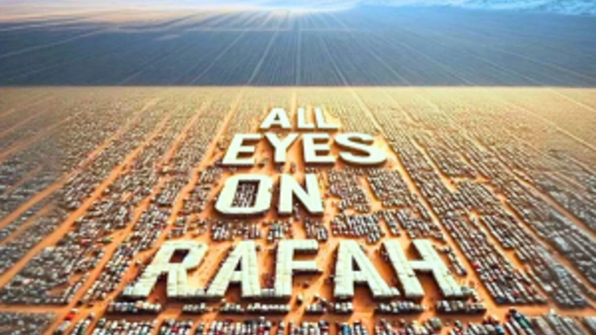 ‘অল আইজ অন রাফা (সকলের নজর রাফাহর দিকে)’একটি এআই-উৎপাদিত ছবি। স্লোগান সহ ছবিটি দ্রুত সোশ্যাল মিডিয়ায় ব্যাপক আকার ছড়িয়ে পড়েছে। ইনস্টাগ্রামে এই পোস্টটি ৪৭ মিলিয়নেরও (৪ কোটি ৭০ লক্ষ) বেশি বার শেয়ার হয়েছে, যেখানে দুয়া লিপা, লুইস হ্যামিল্টন এবং গিগি ও বেলা হাদিদের মতো সেলিব্রিটিরা এটি শেয়ার করেছেন।
