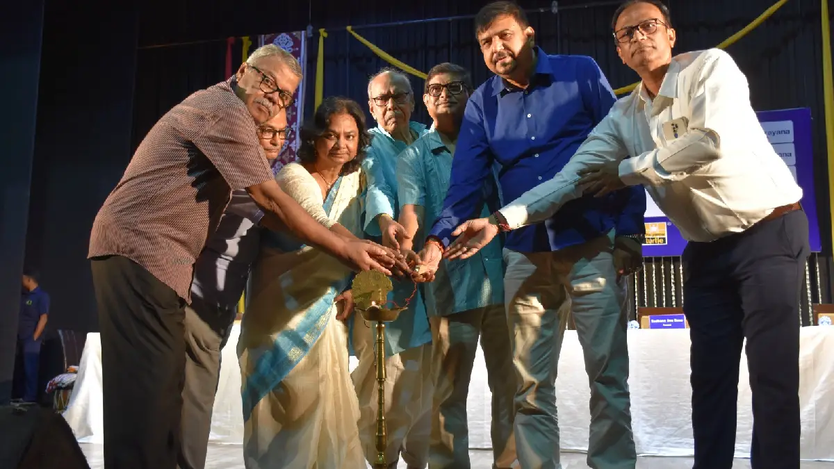 প্রধান অতিথি রাজ্যের মন্ত্রী সুজিত বসুকে বরণ করছেন সভাপতি প্রান্তিক সেন (ডান দিকে), সাধারণ সম্পাদক ইমন কল্যাণ সেন (বাঁ দিকে) এবং কোষাধ্যক্ষ সাধনা দাস বসু। রয়েছেন ক্লাবের অন্যতম মেন্টর রথীন্দ্রমোহন বন্দ্যোপাধ্যায়।