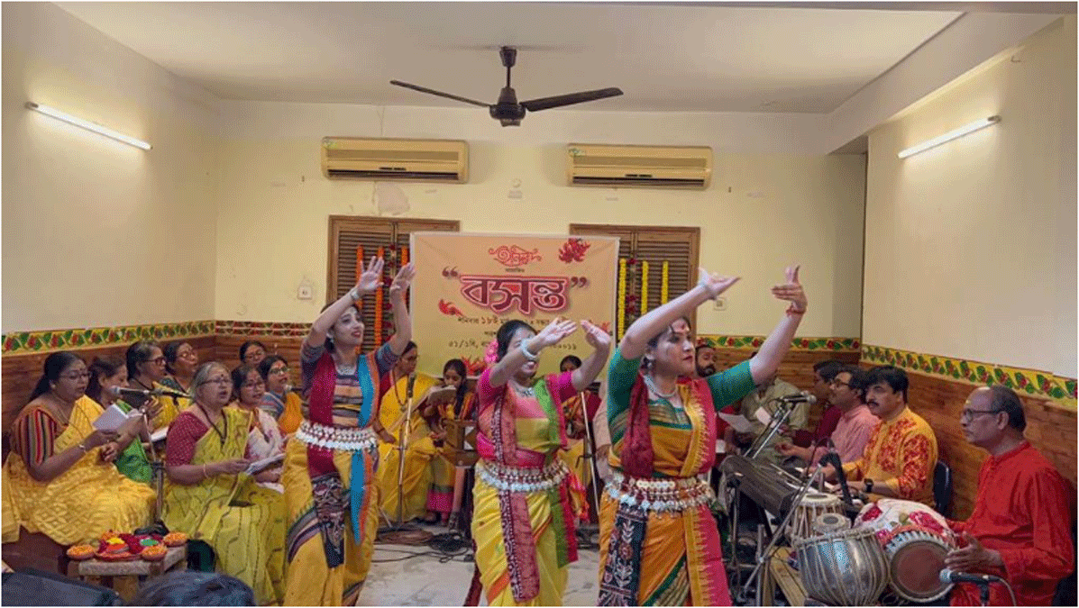 সে দিনের আবহাওয়া বসন্তের ছিল না। আকাশ মেঘে ভারাক্রান্ত, মাঝেই মাঝেই ঝরে পড়ছে বৃষ্টি। কিন্তু সে দিনের আনন্দে সে বাধা হতে পারেনি। বাইরে মেঘমেদুর আবহাওয়া থাকলেও ঘরে বন্দি করা হল বসন্তকে। এ ভাবেই শ্রোতা-দর্শকদের মননে ‘বসন্ত’ এনে দিল ইন্দিরা। আর সকলের সঙ্গে আনন্দ ভাগ করে নিতে শ্রীনন্দা মুখোপাধ্যায় ডাক দিলেন শ্রোতা-দর্শকদের। ফাগ-ফুলে সেজে ‘ওরে গৃহবাসী খোল দ্বার খোল’ গানের সঙ্গে কণ্ঠ দিয়ে সবাই নাচে-গানে মেতে উঠলেন। সব শেষে সকলকে চা-শিঙাড়া দিয়ে আপ্যায়ন। ওই দিনের অনুষ্ঠানের পূর্ণাঙ্গ সমাপন হল এ ভাবেই।
