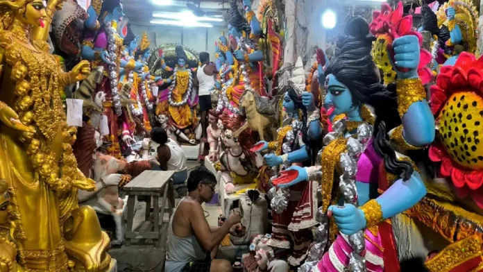 কুমোরটুলির শিল্পীদের হাতে সেজে উঠছে মায়ের মূর্তি, ডাকিনী যোগিনী