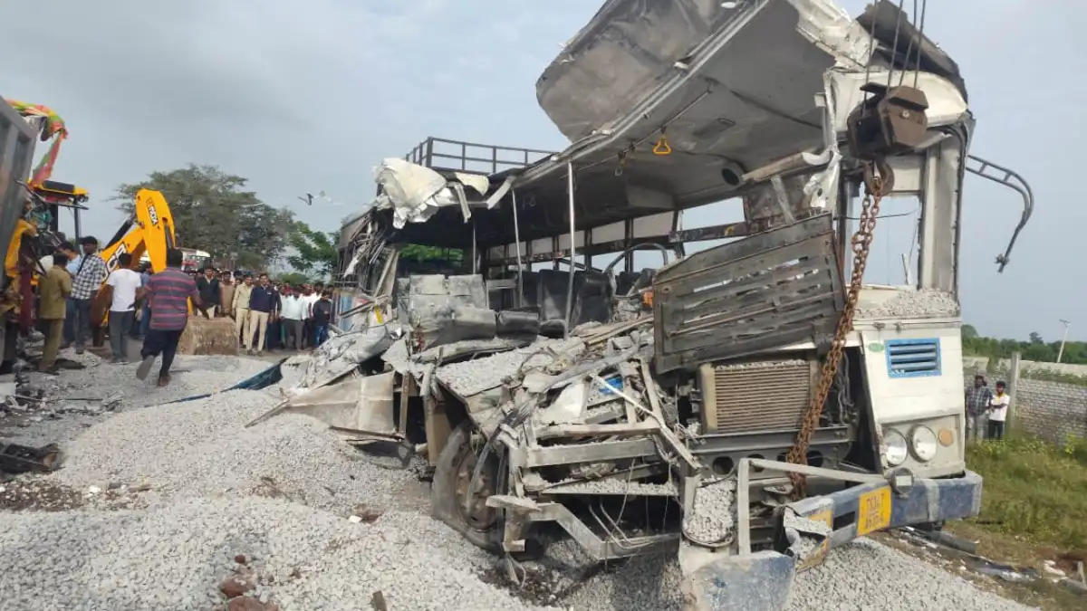 তেলঙ্গানার রঙ্গা রেড্ডি জেলায় সোমবার সকালে ভয়াবহ সড়ক দুর্ঘটনায় অন্তত ২৪ জন নিহত হয়েছেন, আহত হয়েছেন আরও অনেকে। পুলিশের প্রাথমিক রিপোর্ট অনুযায়ী, ভারী পাথর বোঝাই একটি দ্রুতগামী লরি রাজ্য পরিবহন নিগমের (RTC) একটি যাত্রীবাহী বাসের সঙ্গে মুখোমুখি সংঘর্ষে জড়িয়ে পড়ে। সংঘর্ষের ফলে লরির বোঝাই করা নুড়ি-পাথর বাসের উপরে পড়ে যায়, এবং মুহূর্তের মধ্যেই বাসের সামনের অংশ পুরোপুরি চূর্ণবিচূর্ণ হয়ে যায়।