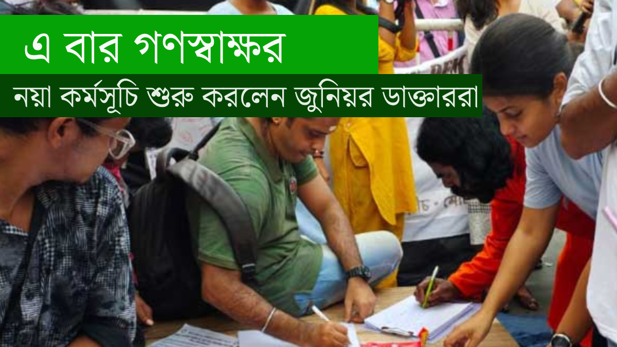 বুধবার ক্যালকাটা মেডিক্যাল কলেজে জুনিয়র ডাক্তারদের একটি বৈঠকে এই কর্মসূচির সিদ্ধান্ত চূড়ান্ত হয়। আন্দোলনকারীদের মতে, এই উদ্যোগের মাধ্যমে তাঁরা সাধারণ মানুষের সঙ্গে আরও শক্তিশালী সংযোগ তৈরি করতে চান। এর অংশ হিসেবে ধর্মতলার চার প্রান্তের চারটি জায়গায় সাধারণ মানুষের স্বাক্ষর সংগ্রহের জন্য ব্যবস্থা করা হয়েছে।