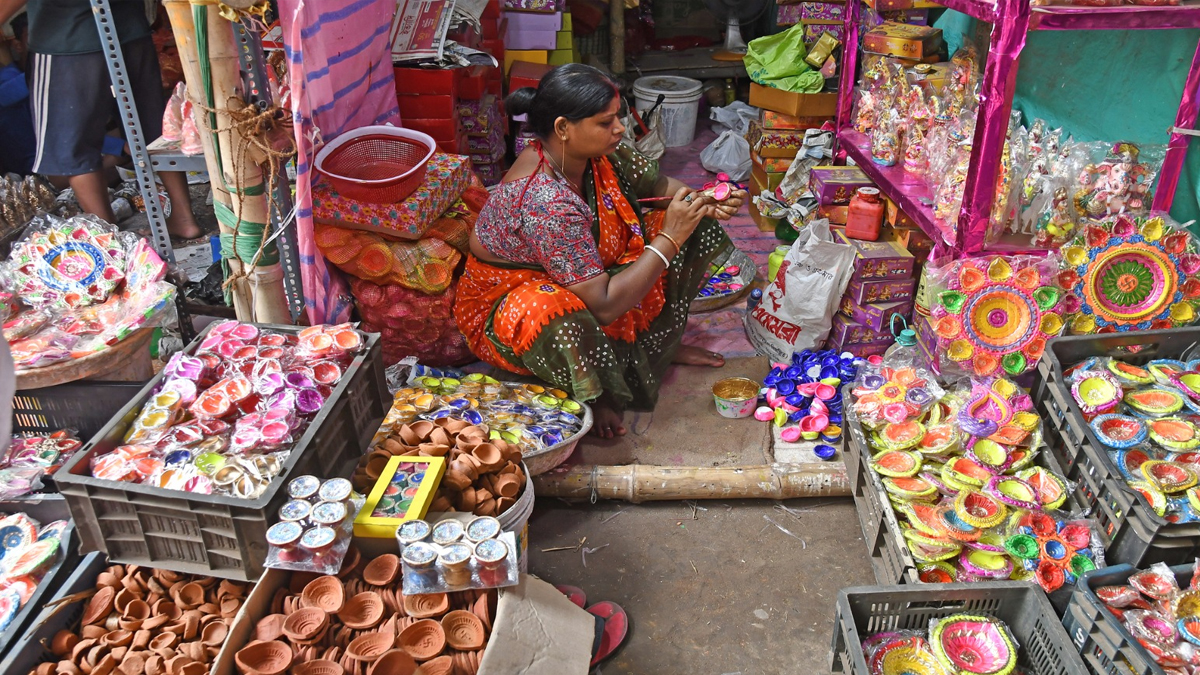 কলকাতা: দুর্গাপুজো মিটতেই জোরকদমে শুরু হয়েছে কালীপুজোর প্রস্তুতি। এক দিকে যেমন ব্যস্ততা তুঙ্গে পটুয়াপাড়ায়, অন্য দিকে ক্রেতার ভিড়ে গমগম করছে চাঁদনির মতো আলোর বাজার। রাজীব বসুর ক্যামেরায় ধরা পড়ল সে সবরেই কয়েকটা মুহূর্ত…