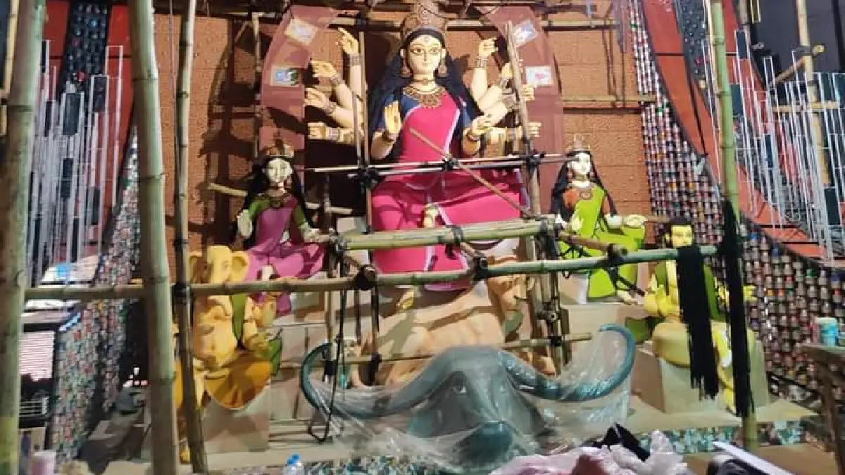 মণ্ডপসজ্জার কাজ চলছে খিদিরপুর ২৫ পল্লীতে।