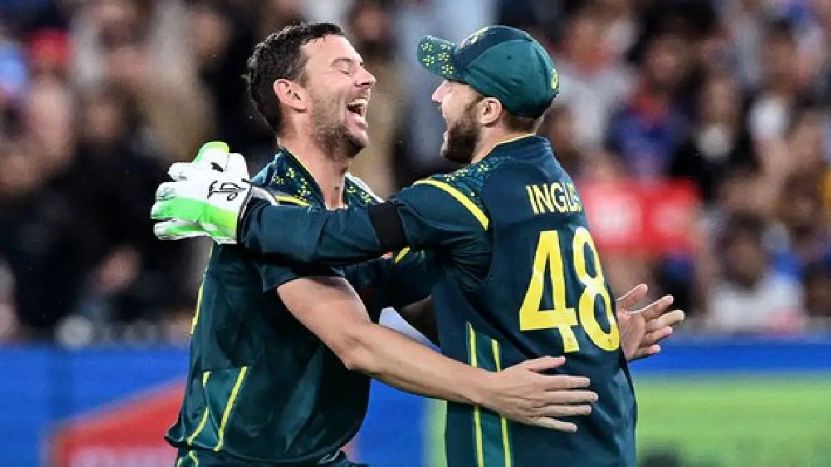 জয়ের জন্য প্রয়োজনীয় ১২৬ রান তাড়া করতে গিয়ে অস্ট্রেলিয়া যে ছ’উইকেট হারাবে, তা তাদের অতি বড়ো শত্রুও ভাবতে পারেনি। বেশ ভালোই শুরু করেছিল তারা। মিচেল মার্শ আর ট্র্যাভিস হেড ৪.৩ ওভারে তুলে ফেলেন ৫১ রান। তখন মনে হচ্ছিল, খুব সহজেই জিতে যাবেন মার্শরা। ১৫ বলে ২৮ রান করে বরুণ চক্রবর্তীর বলে তিলক বর্মাকে ক্যাচ দিয়ে হেড বিদায় নিতে মার্শের সঙ্গী হন জোশ ইংলিস। তাঁরা স্কোর নিয়ে যান ৮৭-তে। কিন্তু অস্ট্রেলিয়ার শেষ ৫ উইকেট পড়ে যায় ৩৭ রানে। তবে রান ওঠার গতি কমেনি। ৩৬.৪ ওভার বাকি থাকতেই জয় করায়ত্ত করেন মার্শরা। মার্শ নিজে করেন ২৬ বলে ৪৬ রান। ১৩ রানে ৩ উইকেট দখল করে ‘প্লেয়ার অফ দ্য ম্যাচ’ হন জোশ হ্যাজলউড।