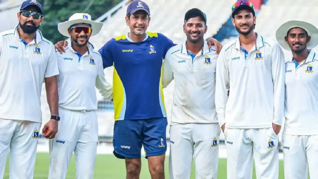 বাংলার কৃতী ক্রিকেটারদের সঙ্গে দলের কোচ লক্ষ্মীরতন শুক্লা। ছবি Xtra Time ‘X’ থেকে নেওয়া।