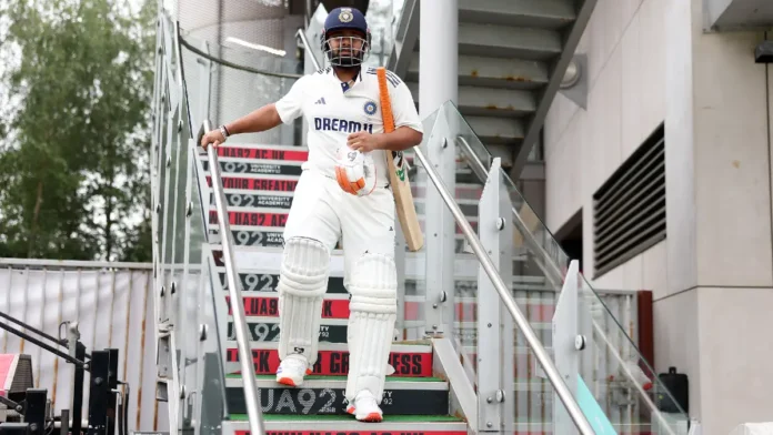 মাঠে নেমে আকাশের দিকে তাকিয়ে কী প্রার্থনা করছেন ঋষভ। ছবি BCCI ‘X’ থেকে নেওয়া।