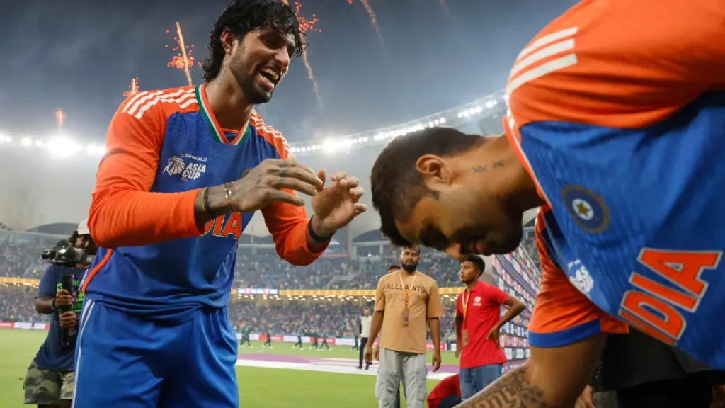 কৃতজ্ঞ অধিনায়ক সূর্যকুমার। তিলককে করছেন কুর্নিশ। ছবি BCCI ‘X’ থেকে নেওয়া।
