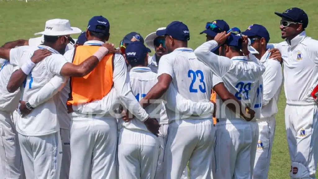 শামি দারুণ ছন্দে বোলিং করে প্রথম আঘাত হানেন — অভিষেক দেশাইকে এলবিডব্লিউ করেন। এর পর আকাশ দীপ বোল্ড করেন আর এক বাঁহাতি ব্যাটার, আর্য দেশাইকে। লাঞ্চের আগে শামি ফিরিয়ে দেন সিদ্ধার্থ দেশাইকে।