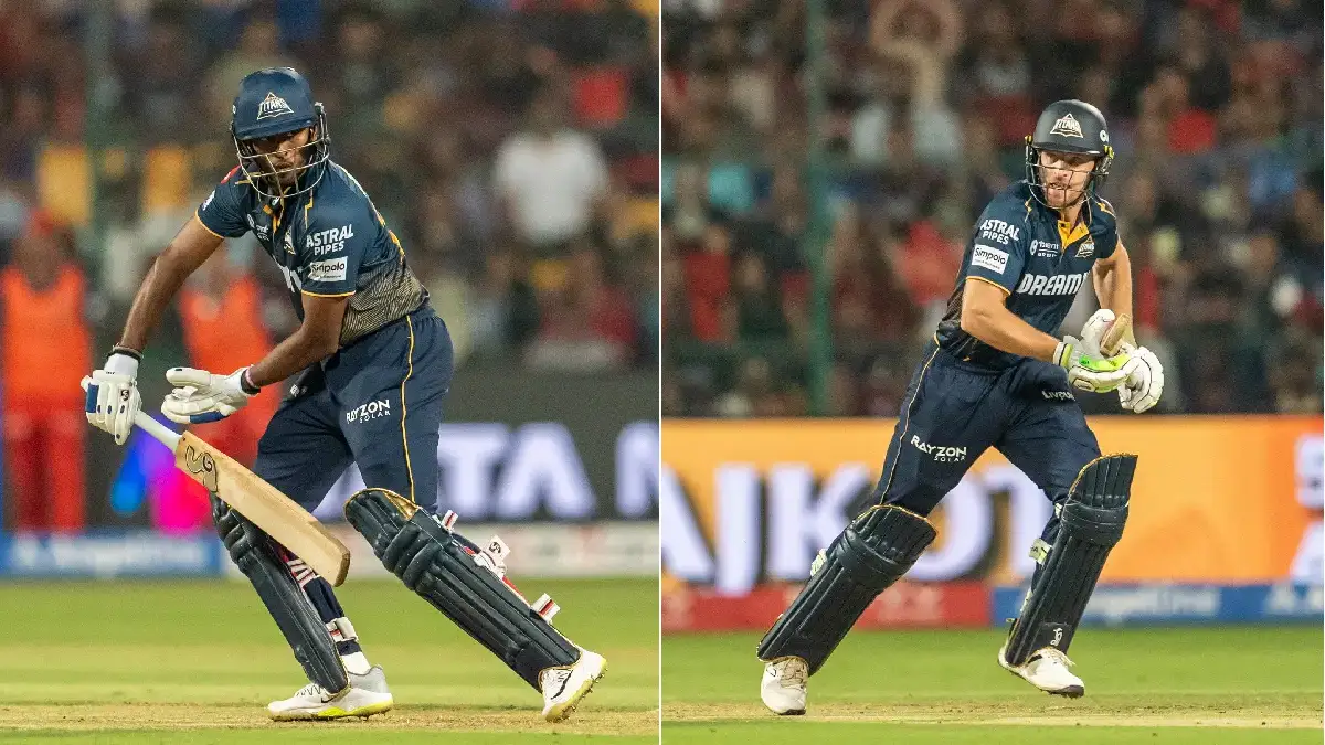 জয়ের পথ প্রশস্ত করলেন সাই কিশোর (বাঁ দিকে) এবং মহম্মদ সিরাজ। ছবি Indian Premier League ‘X’ থেকে নেওয়া।