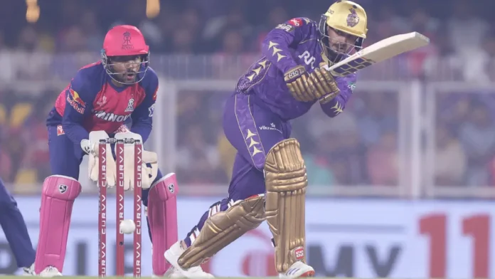 বুধবার গুয়াহাটির বর্ষাপারা স্টেডিয়ামে আয়োজিত ম্যাচে টসে জিতে রাজস্থানকে ব্যাট করতে পাঠায় কেকেআর। শুরুটা খুব খারাপ করেনি রাজস্থান। যশস্বী জয়সওয়াল ও সঞ্জু স্যামসনের ওপেনিং জুটিতে ৩.৫ ওভারে ওঠে ৩৩ রান। নিজস্ব ১৩ রানের মাথায় বৈভব অরোরাকে উইকেট দিয়ে সঞ্জু বিদায় নিলে যশস্বীর সঙ্গে জুটি বাঁধেন অধিনায়ক রিয়ান পরাগ। ১৫ বলে ২৫ রান করে রিয়ান যখন বরুণ চক্রবর্তীর বলে ডি কককে ক্যাচ দিয়ে বিদায় নেন তখন রাজস্থানের রান ৬৭। তার ২ রান পরেই যশস্বী ফিরে যান ২৪ বলে ২৯ রান করে মইন আলির বলে হর্ষিত রানাকে ক্যাচ দিয়ে।