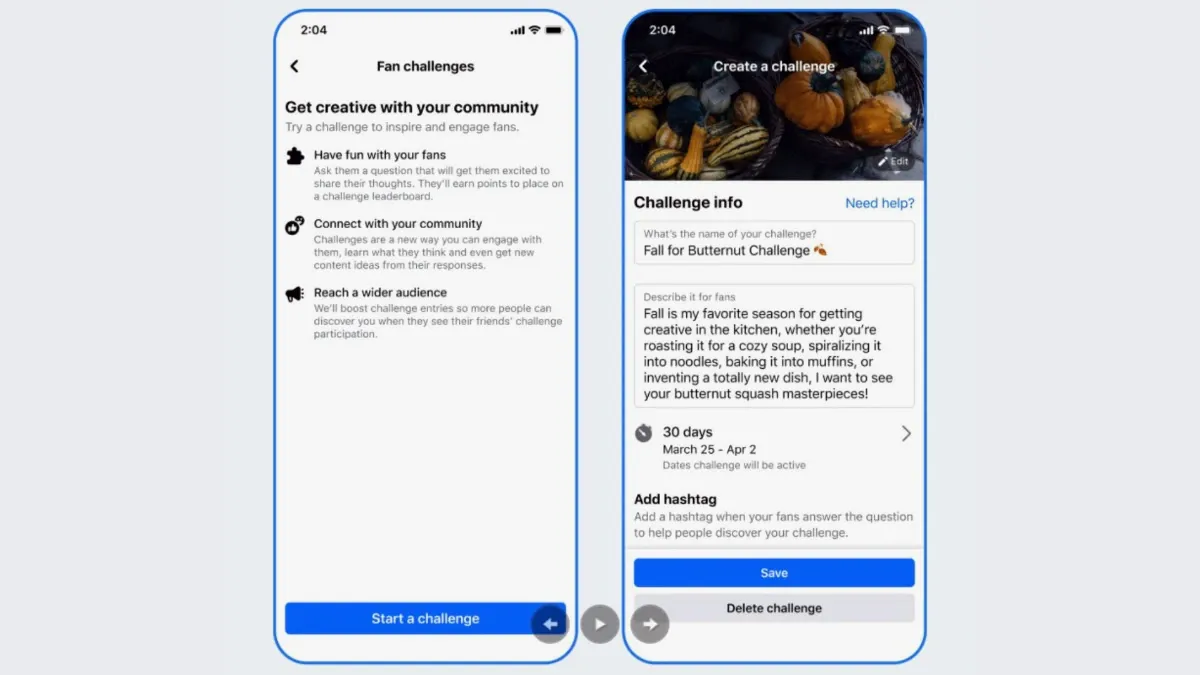 ফেসবুকের ফ্যান চ্যালেঞ্জ ফিচারের মাধ্যমে ক্রিয়েটররা তাঁদের ফলোয়ারদের একটি নির্দিষ্ট বিষয়ে কনটেন্ট বানানোর চ্যালেঞ্জ দিতে পারবেন। সেটা কবিতা, ছবি, ভিডিও কিংবা অন্য যেকোনও সৃজনশীল কাজ হতে পারে।
